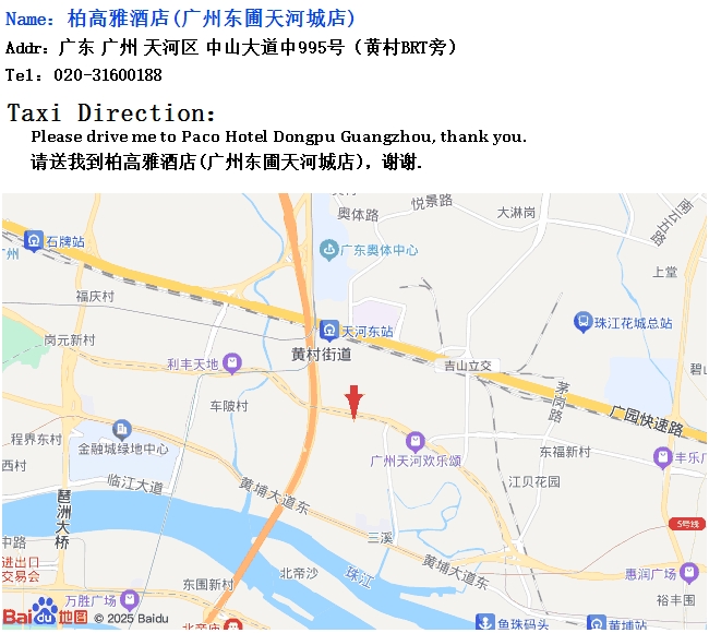 Addr: 995 Zhongshan Avenue central (next to Brt of Huangcun Village)